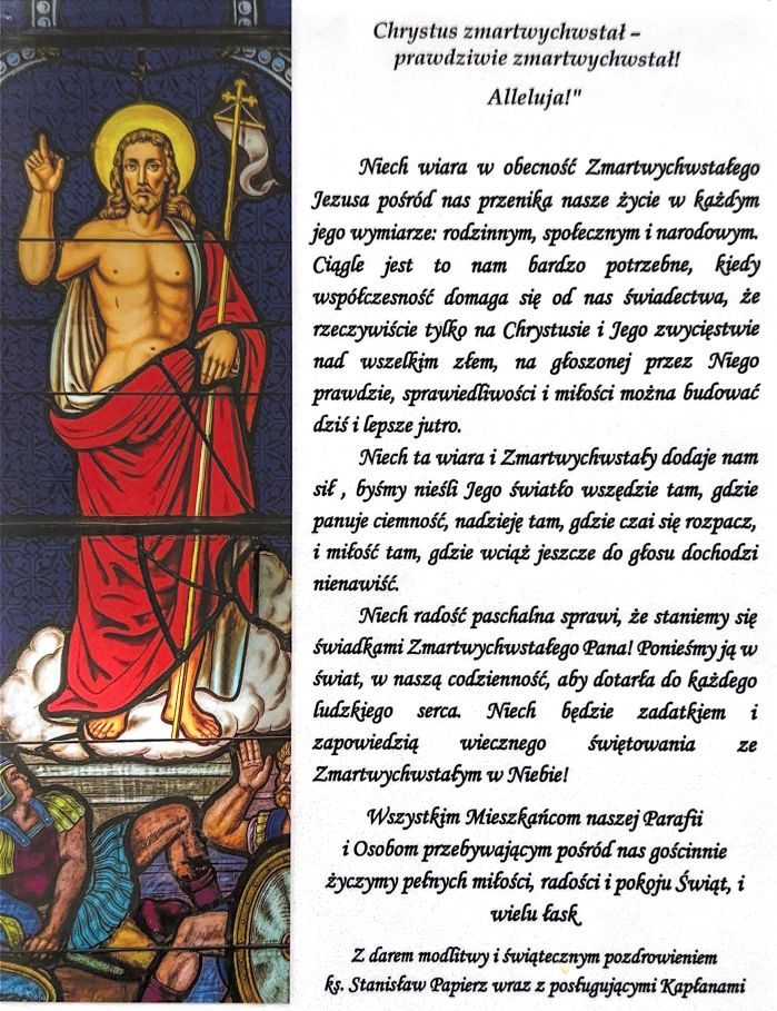 - Dziękujemy za sprzątanie naszej świątyni i złożoną ofiarę na Kościół 120 ZŁ Parafianom: Mariuszowi Sienkiewiczowi, Iwonie Janek, Dorocie Janek, Annie Boreczek, Halinie Zielińskiej. Do złożonej ofiary dołożyła się Pani Barbara Janek. Wszystkim serdeczne Bóg zapłać!