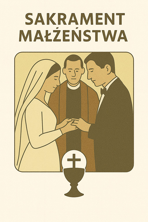 Sakrament Małżeństwa – Jezus Chrystus nadał związkowi mężczyzny i kobiety wymiar zbawczy. Dla wypełnienia powołania małżeńskiego Chrystus przez swoje dzieło odkupienia udziela małżonkom w sakramencie małżeństwa siły i łaski do rozwijania łączącej ich miłości oraz dzielenia się nią z innymi. Sakrament ten jest też odbiciem miłości Chrystusa do Kościoła.